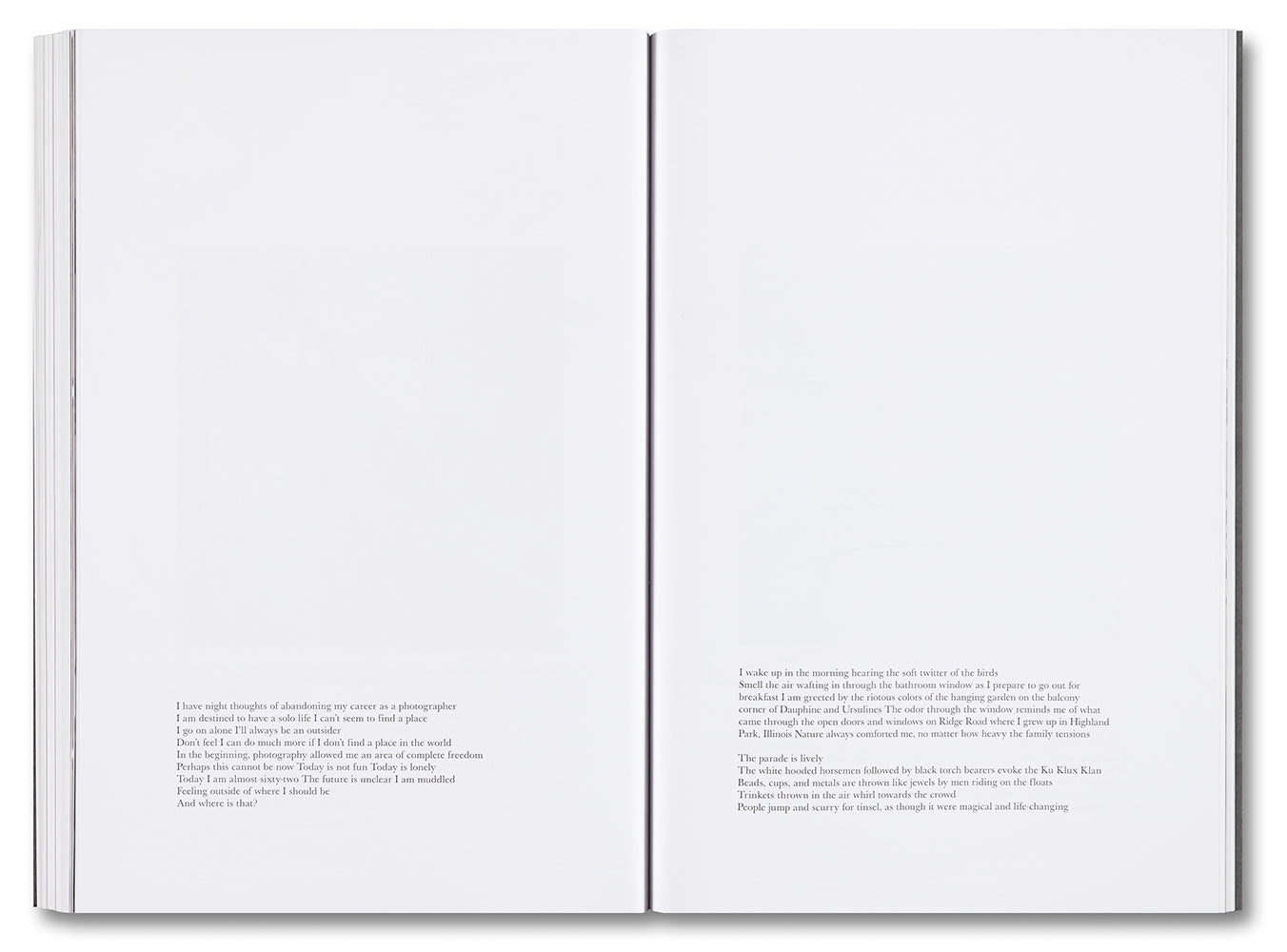 Throughout the same period, Solomon made self-portraits. Taking photography as a means of insistent introspection, over five decades Solomon studied the evolution of her aging body and embraced the self-estrangement her camera affords. A Woman I Once Knew brings these self-portraits together alongside extended texts by Solomon to form a unique work of autobiography, ambitious in its combination of image and text. Solomon’s writings allude to the periodic depressions and euphoric experiences in other cultures that defined her extraordinary life and shaped her empathetic approach to photography. They sit in fraught and suggestive dialogue with her revelatory self-portraits. A remarkable new work from an epochal photographer, this volume shows a startling rigorousness and sensitivity of self-examination which suggests the boundless possibilities of taking the self as subject.