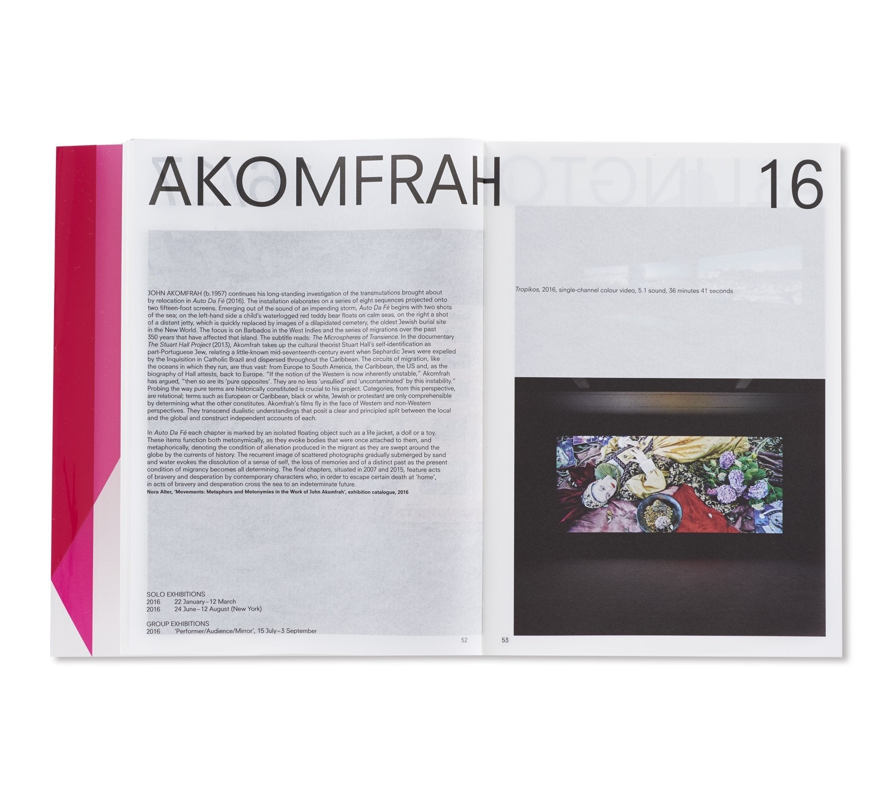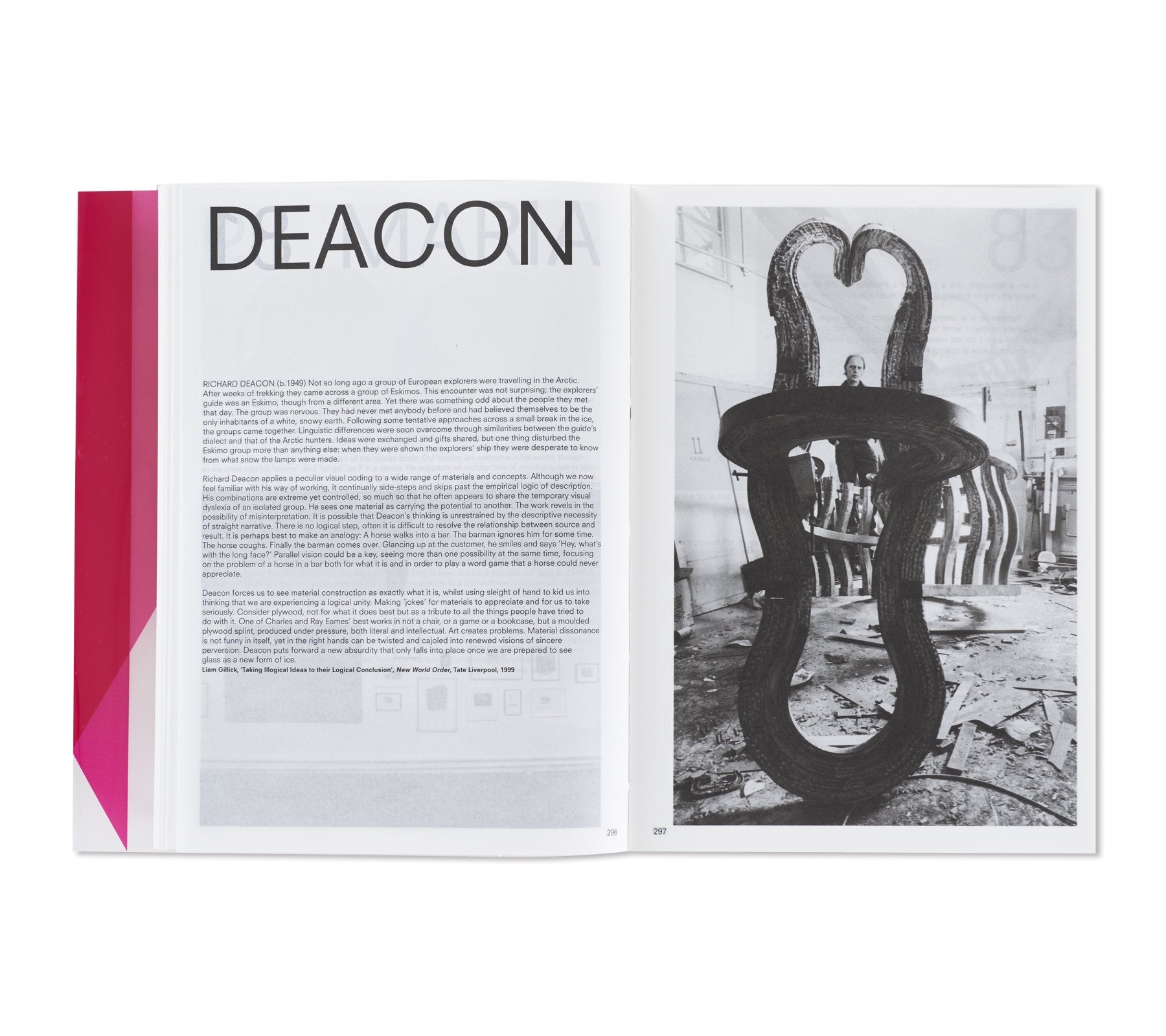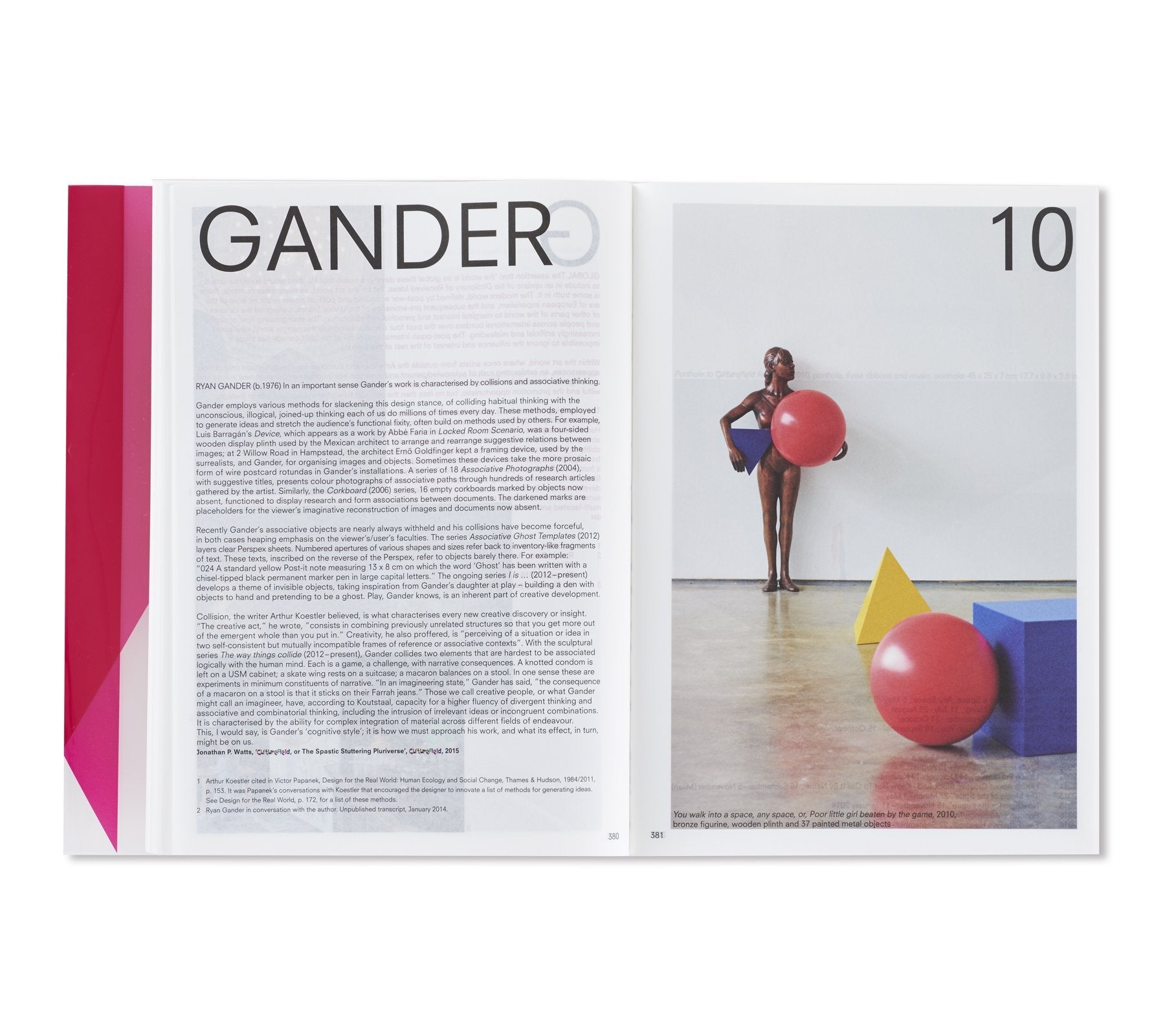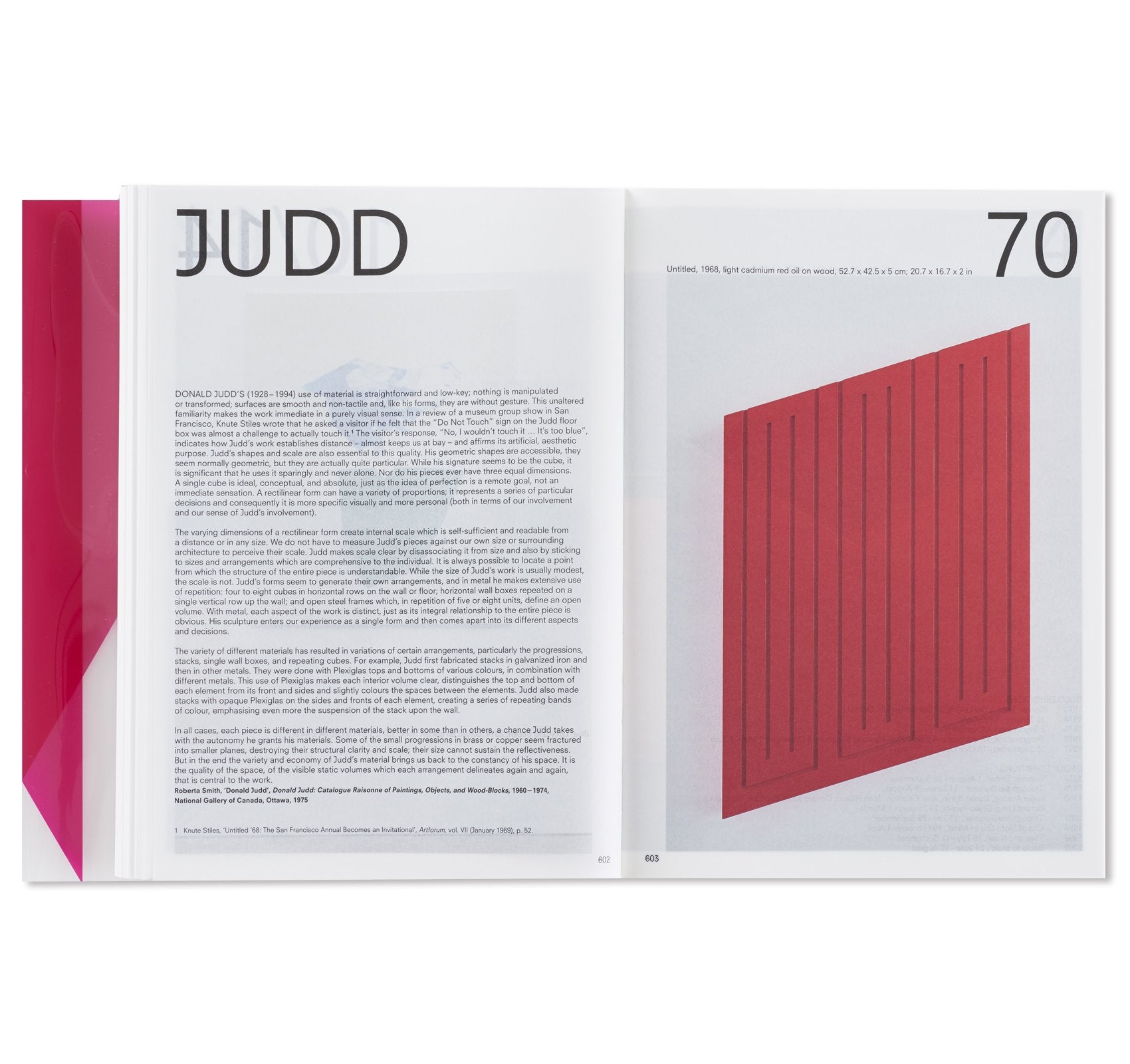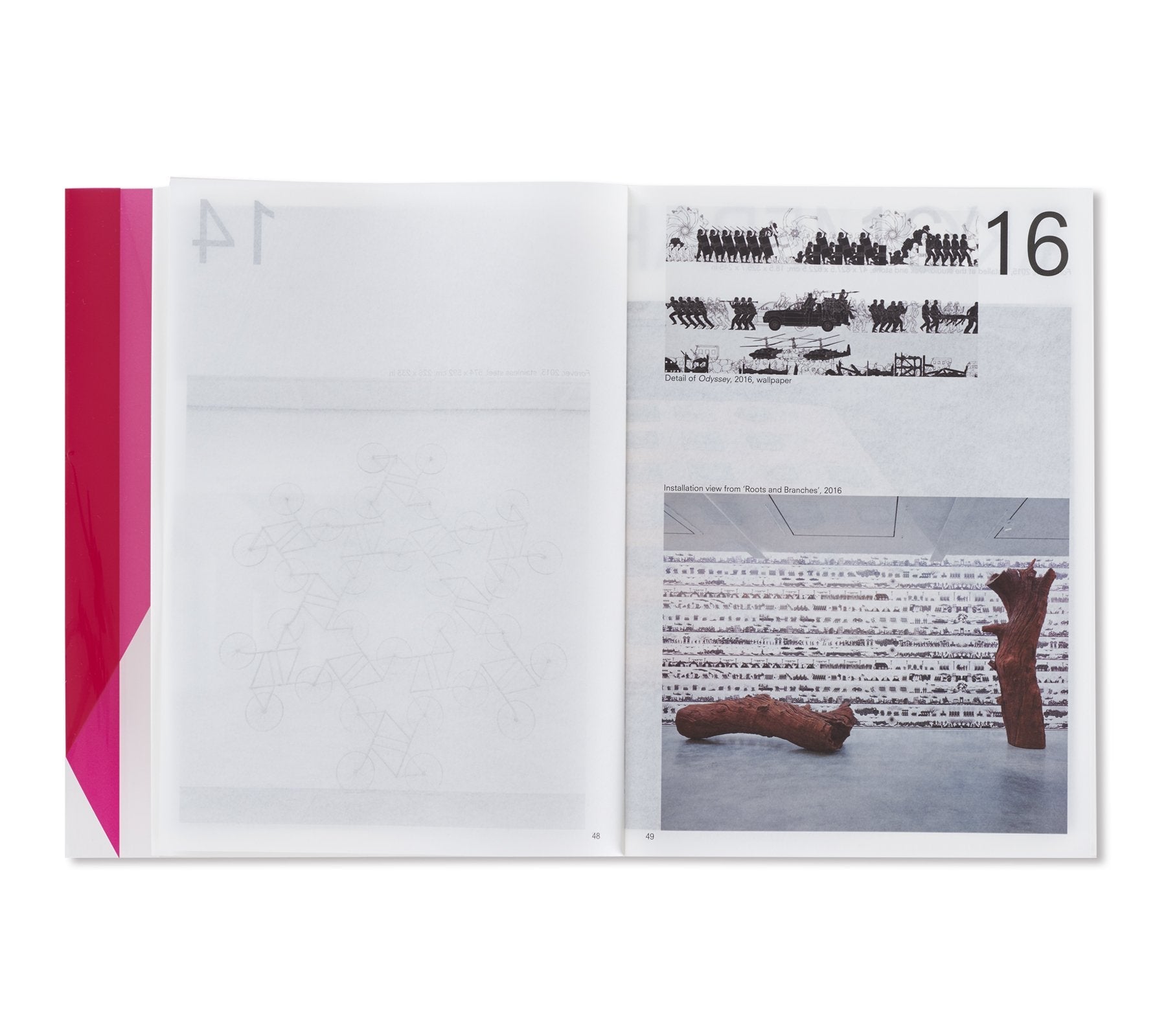 オランダ人デザイナー、イルマ・ボーム(Irma Boom)によって手掛けられた本書は、マリーナ・アブラモヴィッチ(Marina Abramović)に始まり、アイ・ウェイウェイ(Ai Weiwei)、ジョン・アコマフラ(John Akomfrah)からフレッド・サンドバック(Fred Sandback)、ローレンス・ウィナー(Lawrence Weiner)まで、同ギャラリーに所属してきたアーティスト達をアルファベット順に掲載。1000ページを超えるボリュームとなる同書には、同ギャラリーで行われてきた150名以上のアーティスト達による500以上に及ぶ展覧会記録と共に、この半世紀で重要とされてきた批評家達が寄せたテキストやレビュー、過去出版物からの抜粋などが添えられる形で収録。これらのアーカイブの中には、リチャード・ディーコン(Richard Deacon)によるスケッチやソル・ルウィット(Sol LeWitt)が手書きで残したカタログレイアウト、更にはカール・アンドレ(Carl Andre)の書いたインスタレーションの指示書にダン・グラハム(Dan Graham)の展覧会メモに加え、アーティスト達がギャラリーの創設者、ニコラス・ログズデイル(Nicholas Logsdail)に宛てたポストカードなど、多種多様な資料も収められており、非常に充実したコレクションが詰まった1冊となっている。箱には、1970年代から同ギャラリーに所属してきたフランス人アーティスト、ダニエル・ビュレン(Daniel Buren)が特別に制作したアートワークが起用されている。